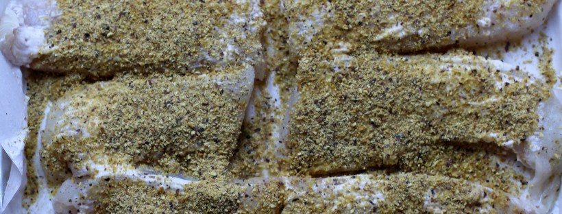 Sprinkle Raskin’s ground pistachio over the fillets.